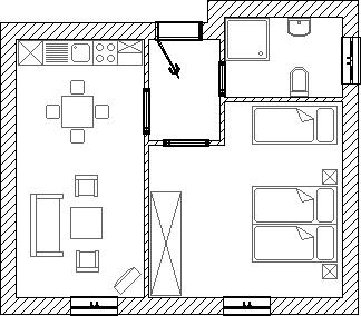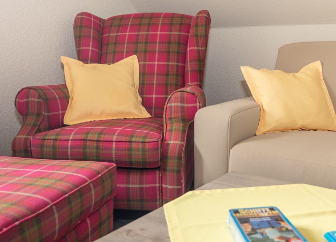 Die Wohnung verfügt über ein Schlafzimmer mit Doppelbett (180*200) in Komforthöhe, ein Wohnzimmer mit Ohrensessel, Sofa und Flachbild-TV sowie einer Küchenzeile mit Essplatz. Die Küchenzeile ist ausgestattet mit Geschirrspüler, Ceranfeld, Mikrowelle, Waserkocher, Kaffeemaschine, Senseo-Maschine etc. Das Bad verfügt über Dusche und WC.