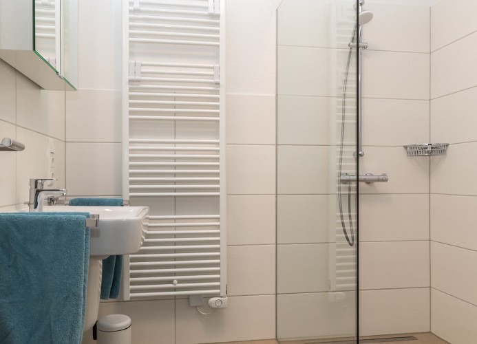 Die Wohnung verfügt über ein Schlafzimmer mit Doppelbett in Komforthöhe (180*200) ausgestattet mit Flachbild-TV, ein Bad mit Dusche und WC und ein Wohn-Essbereich mit voll ausgestatteter Küchenzeile, Essplatz und Wohnbereich mit Sofa und Ohrensessel und Flachbild-TV. Die Wohnung im Erdgeschoss bietet eine eigene Terrasse direkt am Wohnbereich mit Gartenmöbeln und Sonnenschirm.WLAN ist kostenfrei vorhanden.